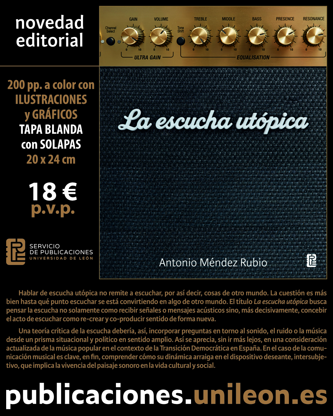 El Servicio de Publicaciones de la Universidad de León pone a disposición del púnico su más reciente novedad editorial, LA ESCUCHA UTÓPICA, de Antonio Méndez Blanco.