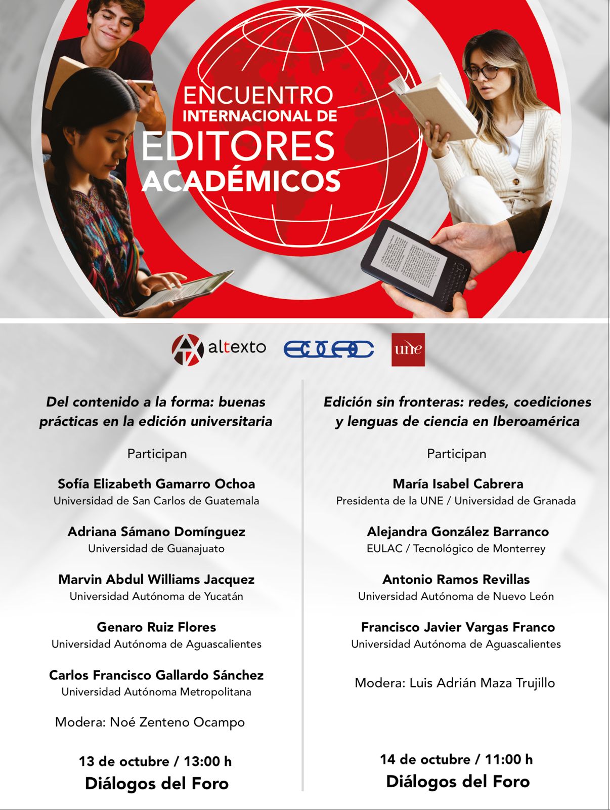 Cabrera intervendrá en el diálogo titulado "Edición sin fronteras: redes, coediciones y lenguas de ciencia en Iberoamérica", junto a Antonio Ramos Revillas (UANL), Alejandra González Barranco (EULAC/Tecnológico de Monterrey), Francisco Javier Vargas Franco (U. Aguascalientes) y Luis Adrián Maza Trujillo (UNACH).